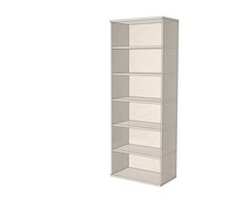 Габаритные размеры. Фасад серого цвета. Полки открытого типа.