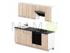 Компактный прямой кухонный гарнитур в нескольких вариантах расцветки фасада, корпуса и столешницы.