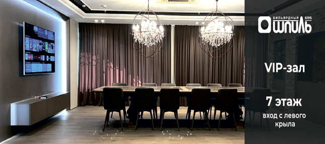 На 7-ом этаже ТРЦ «ГРАД» для взрослых расположен бильярдный клуб «ШПИЛЬ» с рестораном и банкетным залом для организации различного рода торжеств.