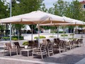 Зонты можно использовать также во время праздников в городе под открытым небом, во время фестиваля, на ярмарках и выставках. Учитывая покрываемую тентом площадь, зонты способны вмещать несколько столиков, потому с успехом эксплуатируются в многолюдных местах. Конструкция зонтов выдерживает длительную эксплуатацию за счет полимерного порошкового покрытия купола, поэтому он не меняет свой внешний вид со временем, и его функции тоже остаются неизменными.