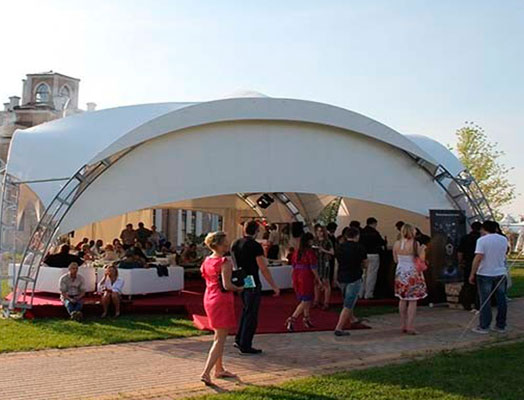Арочный шатер «Дюна» легко собирается и разбирается, он мобилен и удобен в перемещении. Интересный дизайн данной конструкции подчеркнет хороший вкус организатора, а гости непременно оценят ваш выбор.