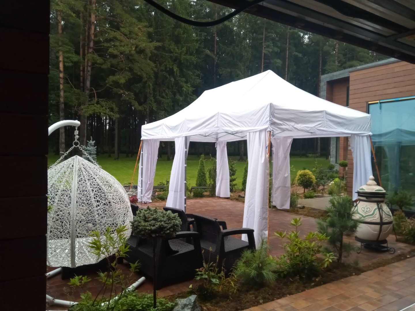 Устанавливается по принципу "гармошки". Стальной каркас! Шатер-трансформер выполнен из плотной водонепроницаемой пропитанной ткани.