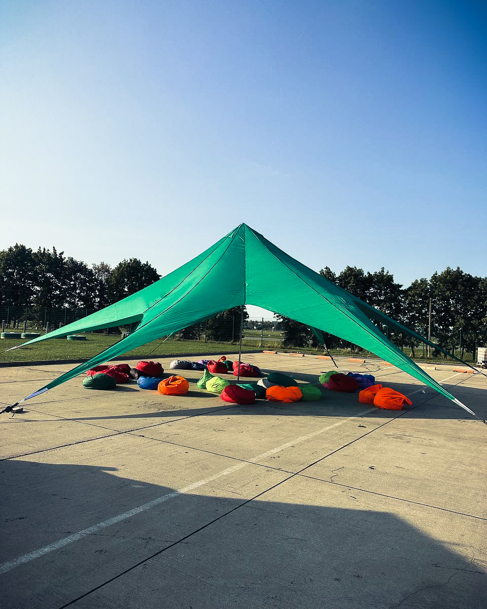 Зелеый шатер "Звезда" площадью 75 м² станет идеальным решением для любых мероприятий, начиная от ярмарок и туристических следов, заканчивая празднованием дня рождения.