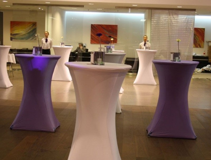 Коктейльный стол решит все проблемы с размещением: он превосходно сэкономит место на фуршете благодаря своим небольшим размерам. Высокая столешница придает удобство в использовании. Стол имеет металлический складной каркас, что добавляет ему надежности и устойчивости, даже если он установлен на земле, а не на ровной поверхности пола. А чтобы столику было легче подружиться со стилем вашего мероприятия, столешницу можно покрыть скатертью для гармоничного сочетания с прочими предметами интерьера.