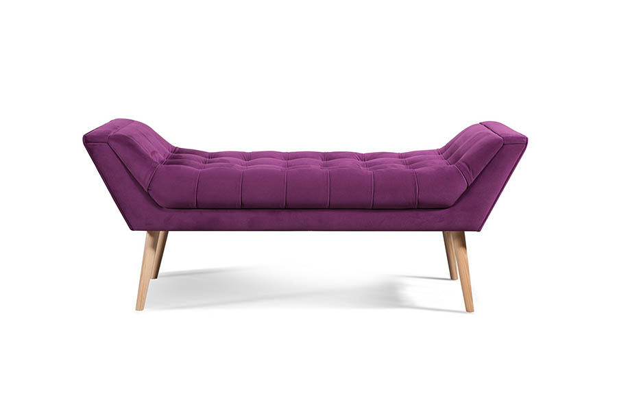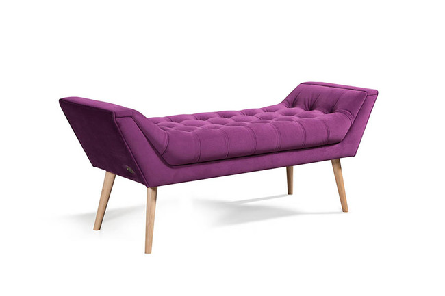 Стильная широкая банкетка в обивке насыщенного цвета.
