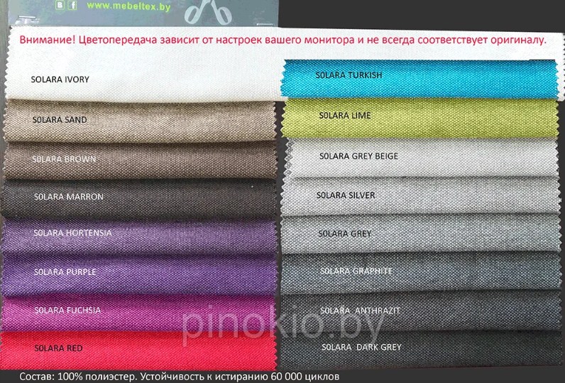 Варианты отделки: Агата (велюр), Солара (Рогожка), Чили (экокожа).