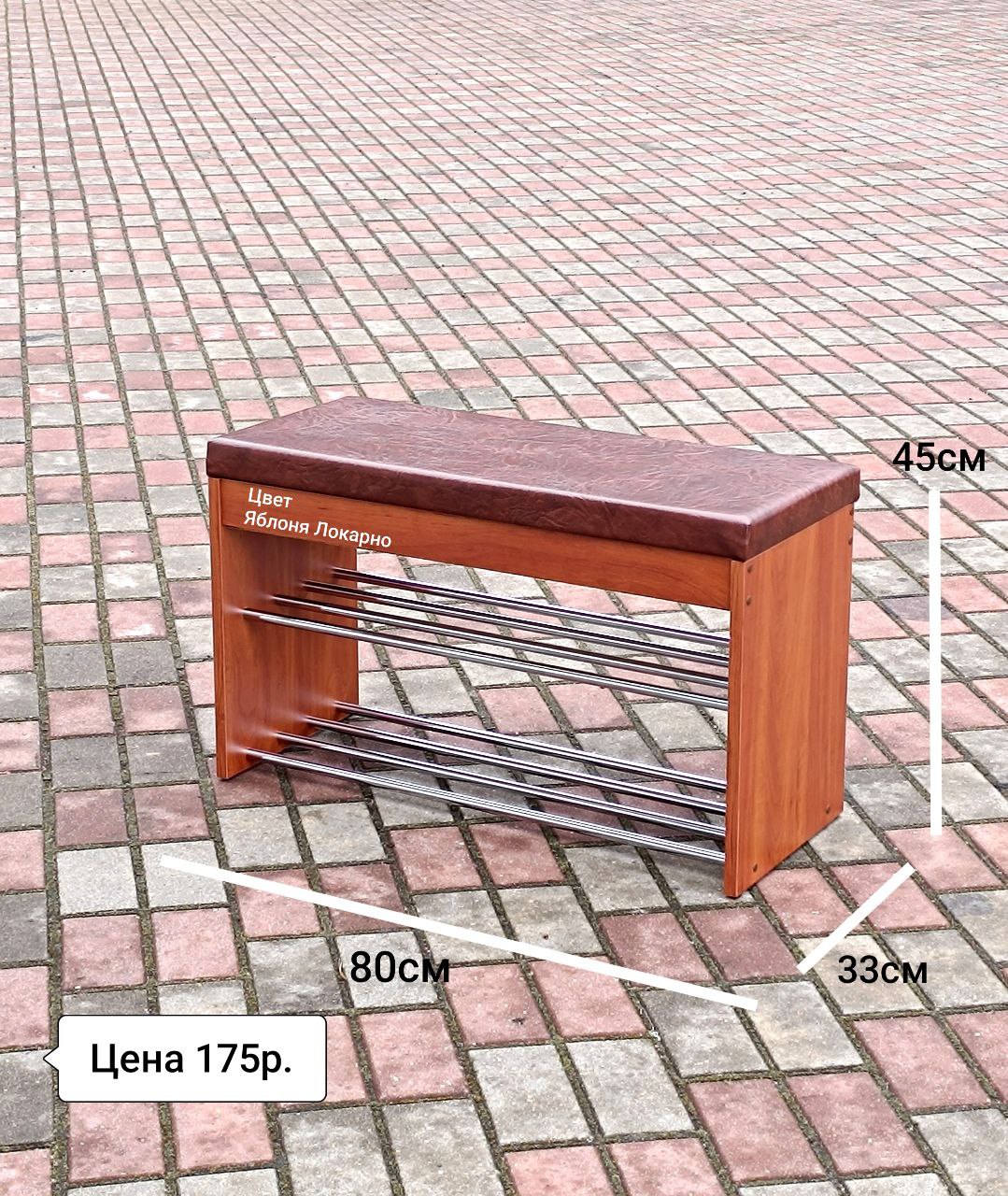 код 156056Размер: 80x33x45 см. Материал: ЛДСП, экокожа. Ниша для мелочей. Поставляется в собранном виде.