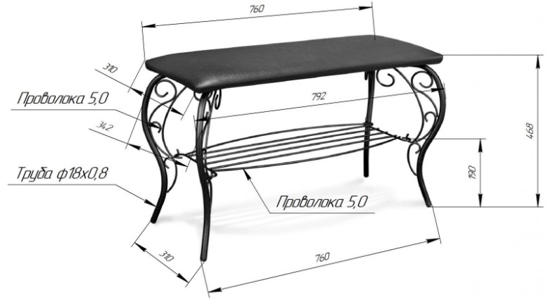 Размер: 360х360х440 мм. Металлический каркас с мягким сидением и декоративной строчкой