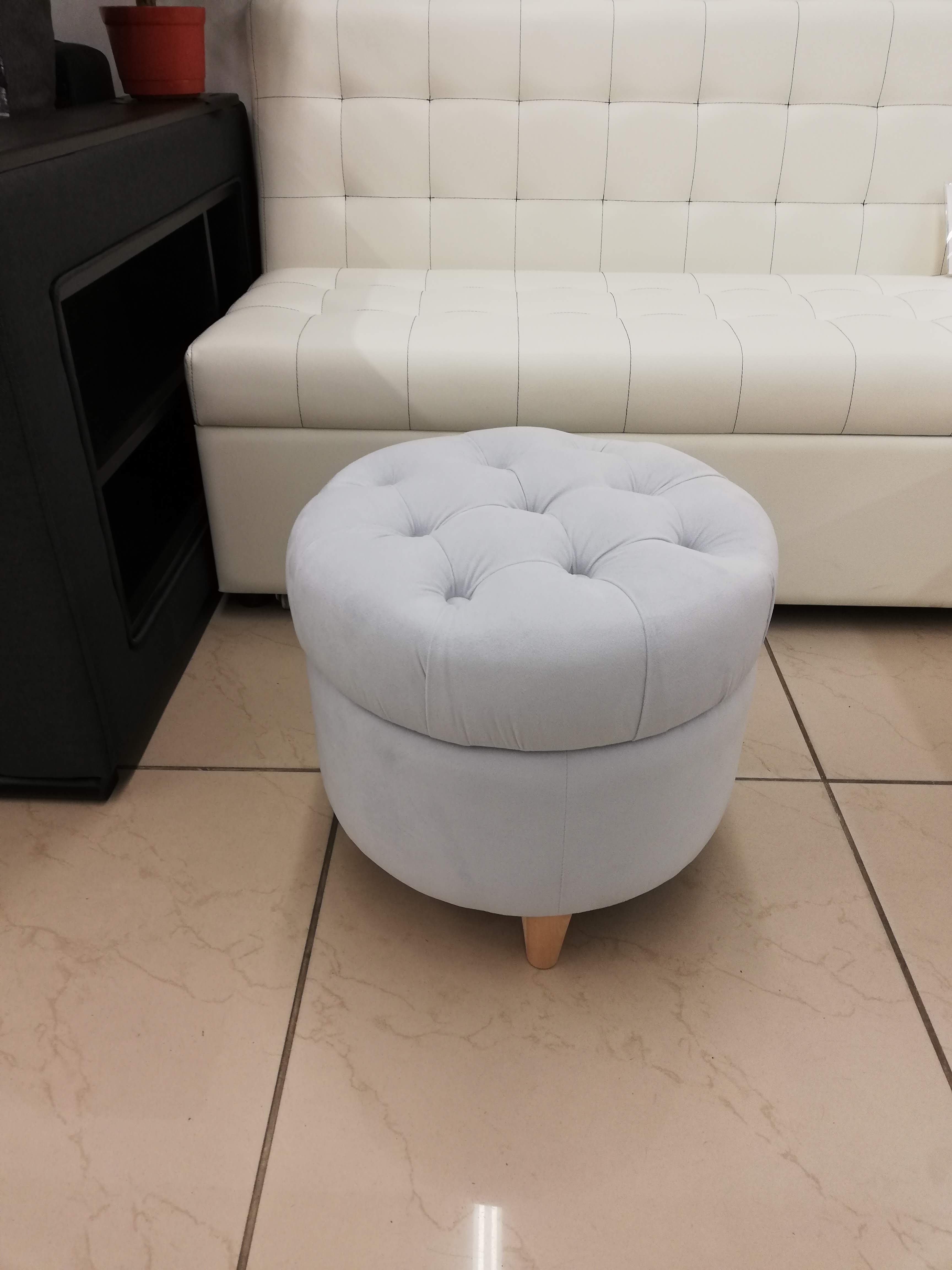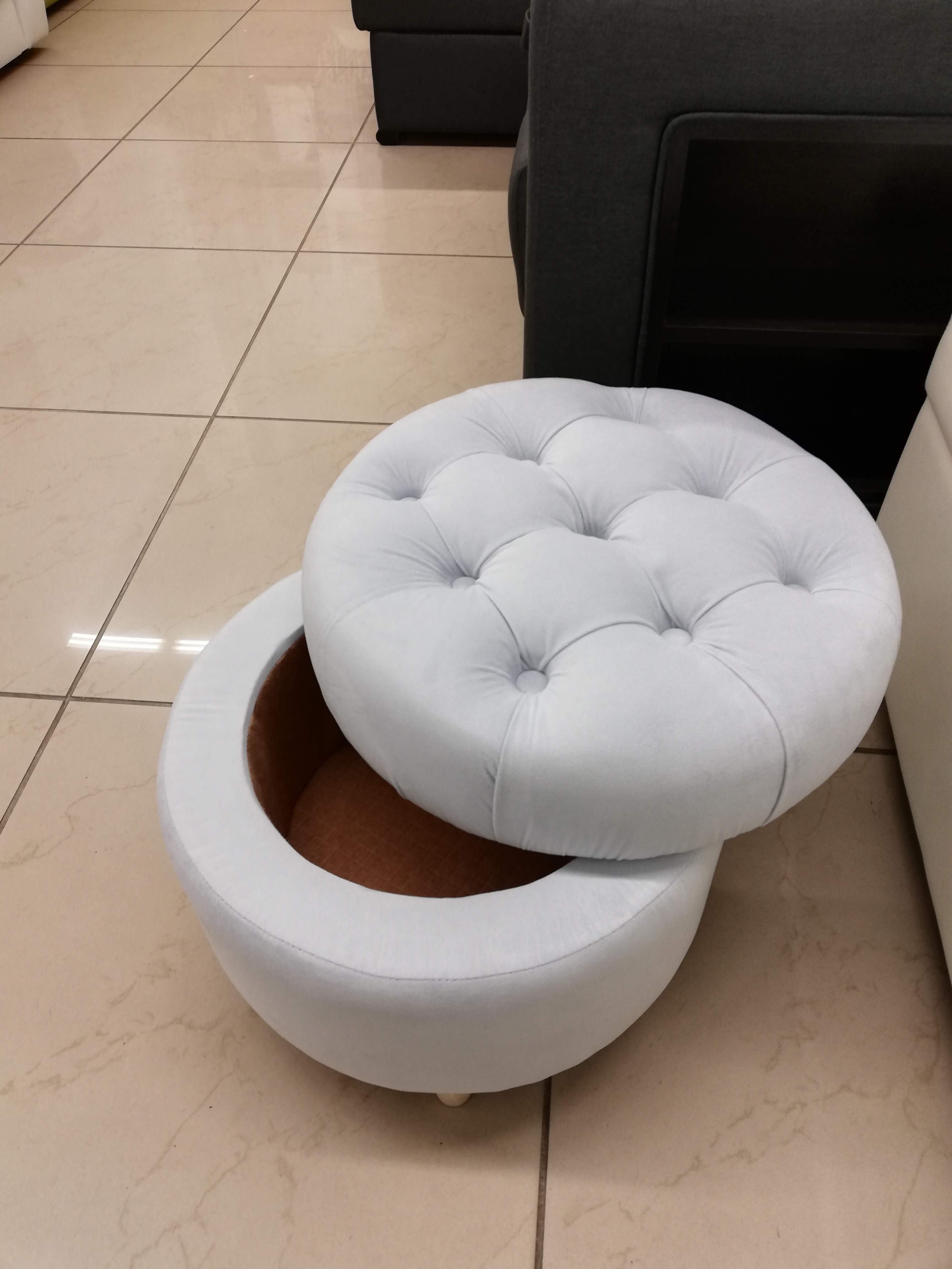 Мягкий пуф с каретной стежкой и ящиком для хранения