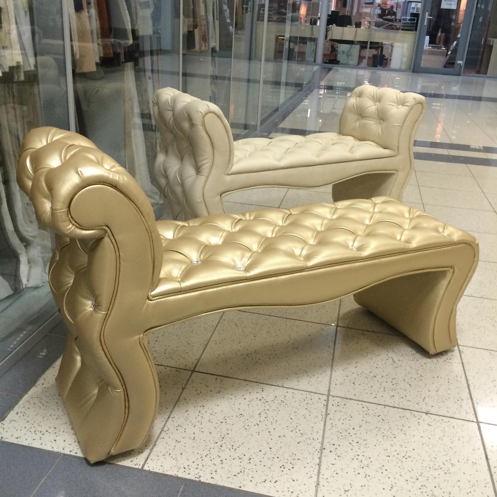 Прямоугольная банкетка в классическом стиле. Белые деревянные опоры.