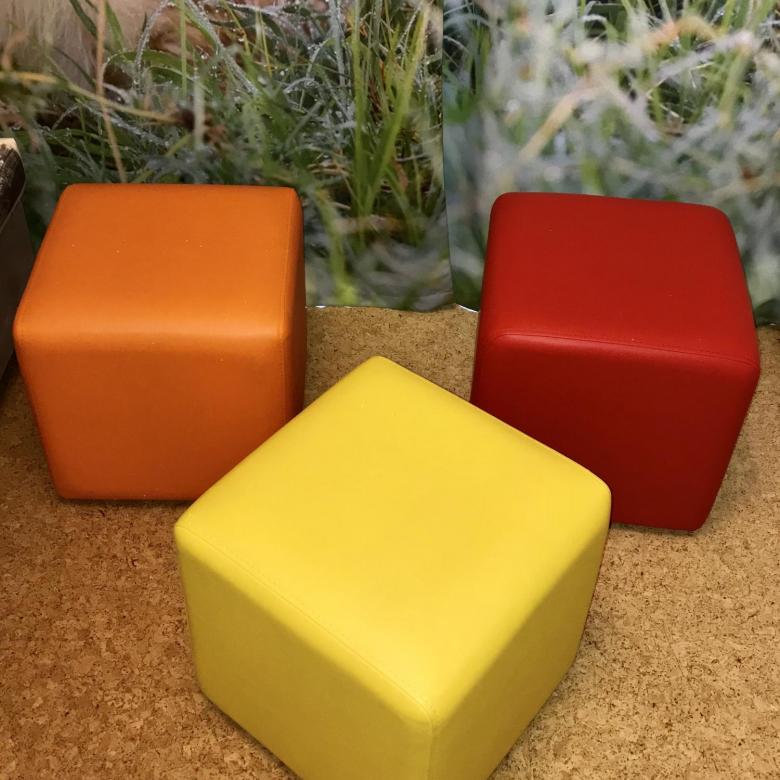5 отдельных стульчиков, которые складываются в один пуф. Огромный выбор тканей и цвета.