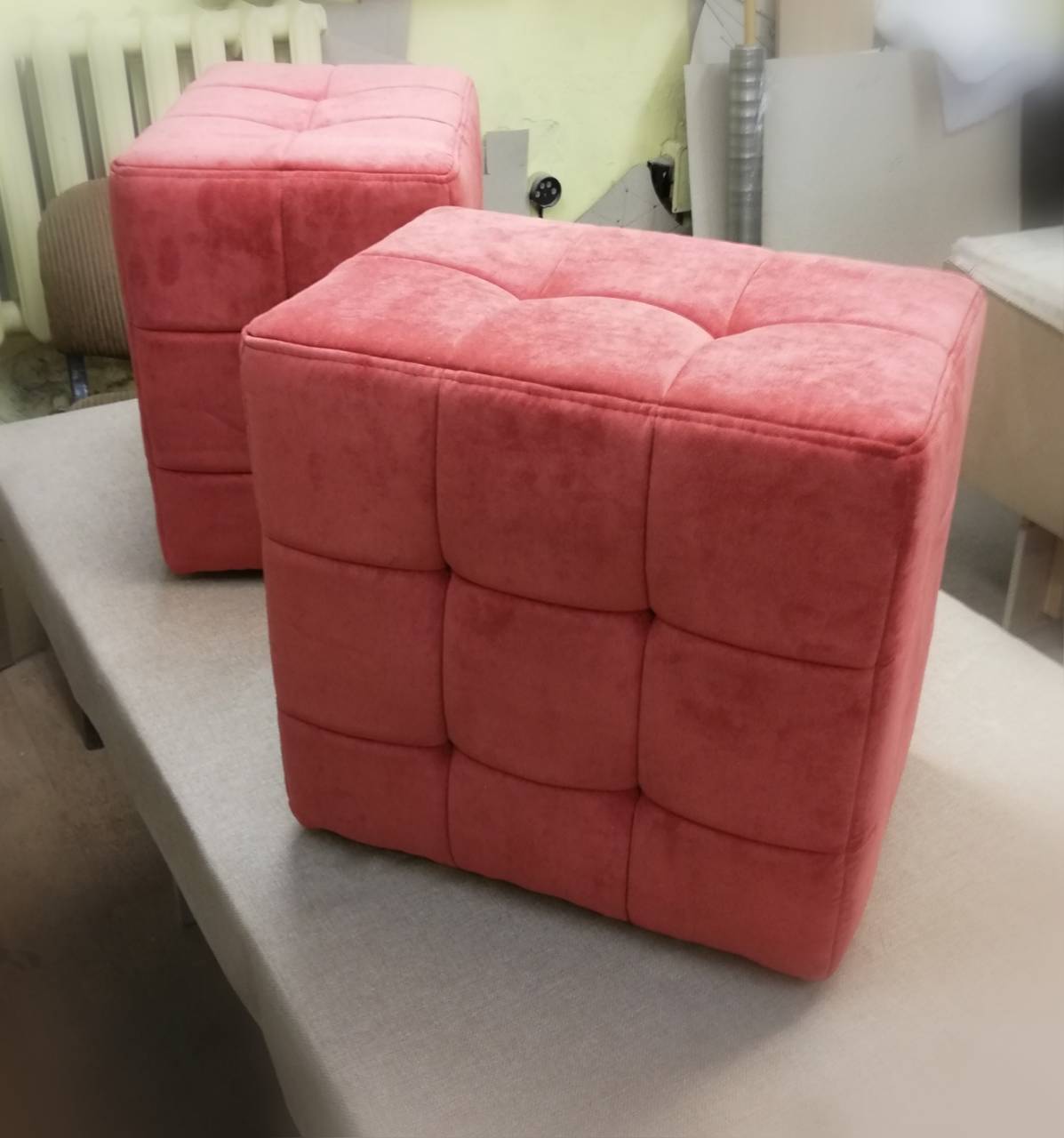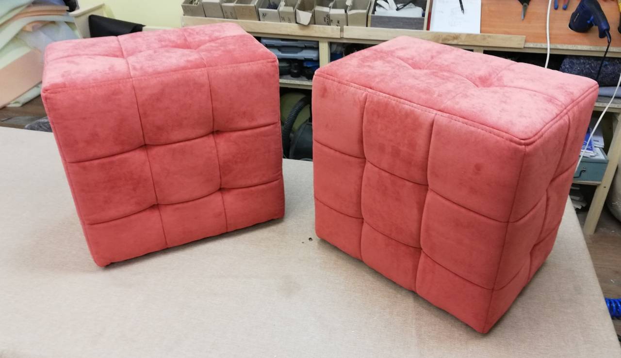 5 отдельных стульчиков, которые складываются в один пуф. Огромный выбор тканей и цвета.