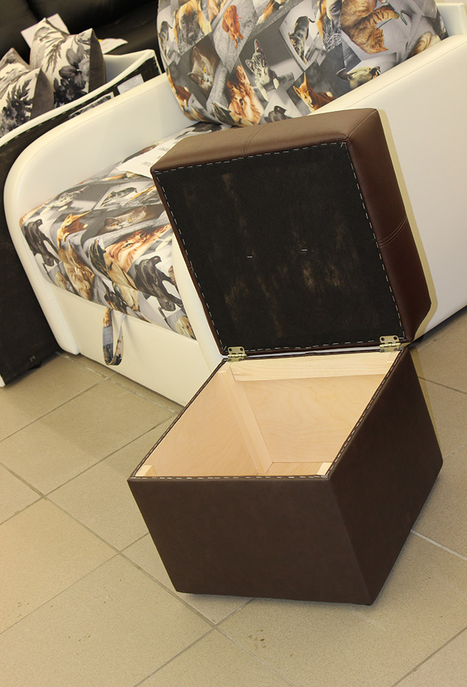 Компактный предмет мебели можно с легкостью перемещать по квартире и приспособить под свои нужды. В основании пуфа находится вместительная ниша для хранения вещей. Пуф не занимает много места и органично дополнит интерьер комнаты.
