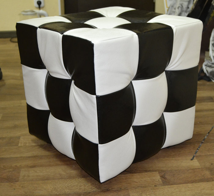 Компактный кубический пуф в шашечной черно-белой цветовой комбинации обит экокожей в легкой стяжке. В ассортименте доступны черно-белые пуфики в хаотичной пиксельной расцветке, а также в разноцветной веселой цветовой гамме, что позволяет использовать кубик не только в прихожей в качестве банкетки или в других помещениях по ситуации, но и как приятное функциональное дополнение в детскую комнату.