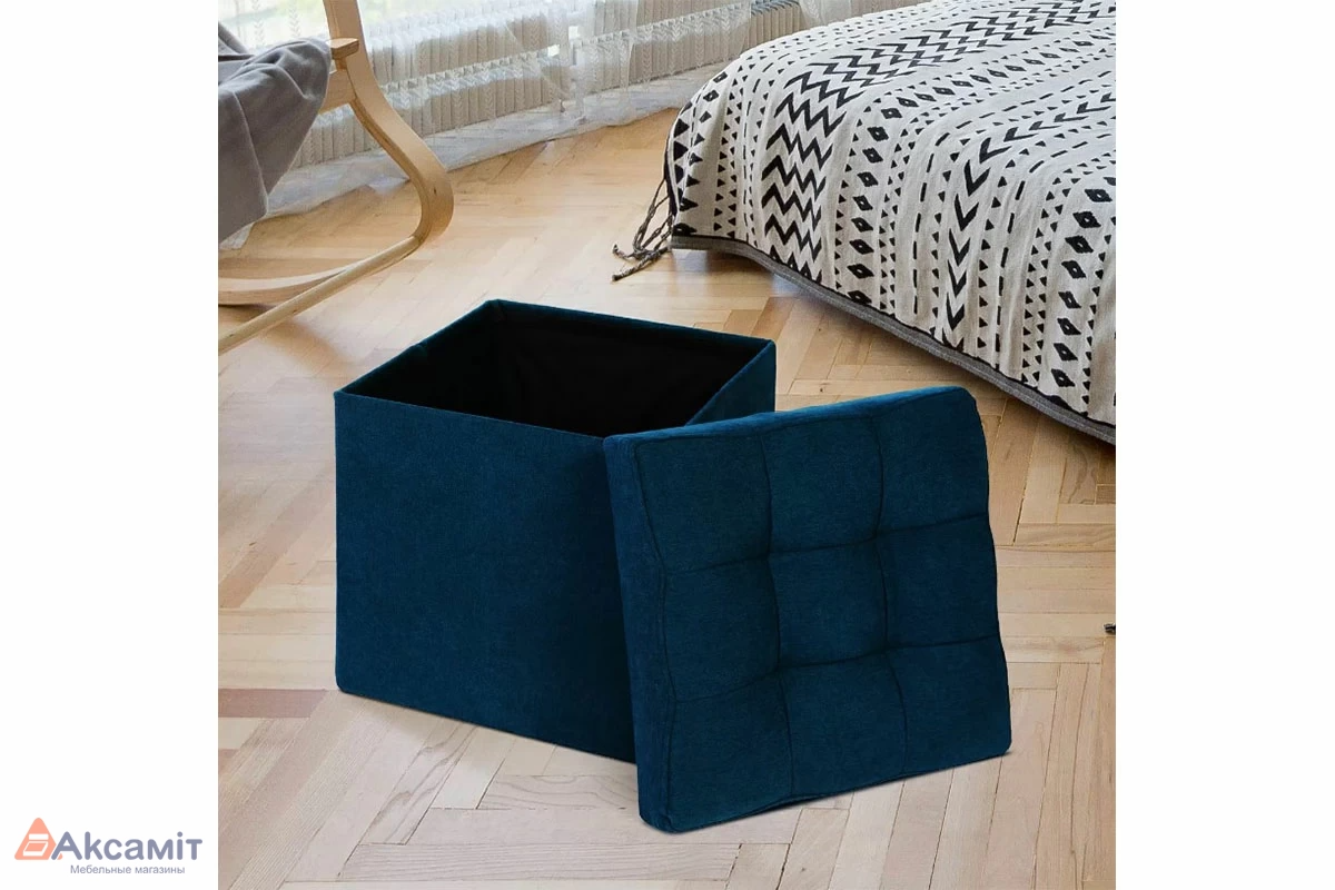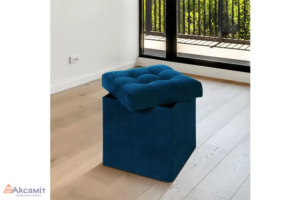 Пуф складной, складывается полностью в крышку изделия. В сложенном виде пуфик занимает немного места, его легко хранить и перевозить.
