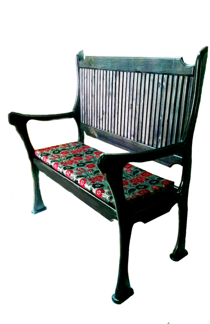 Сиденье и спинка модели декорированы многочисленными вертикальными прорезями. Скамья может комплектоваться удобной подушкой с цветочным декором.