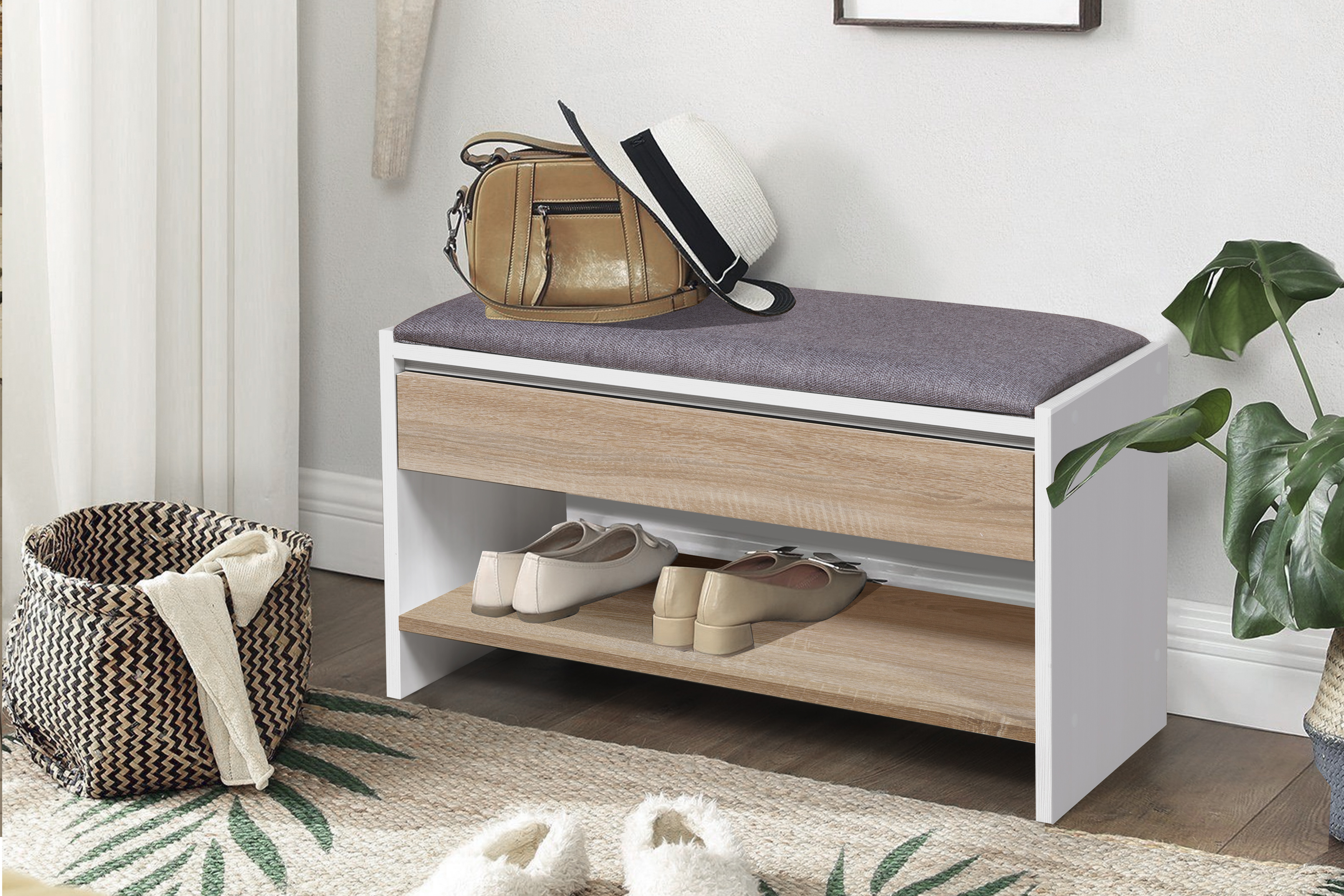Скамья «ВА-012.10» это лаконичное сочетание дизайна и практичности. Данный вариант идеально подойдет для оформления маленьких прихожих. Узкая тумба имеется выдвижной ящик, где можно разместить полезные мелочи и нижнее отделение, пригодное для хранения обуви.