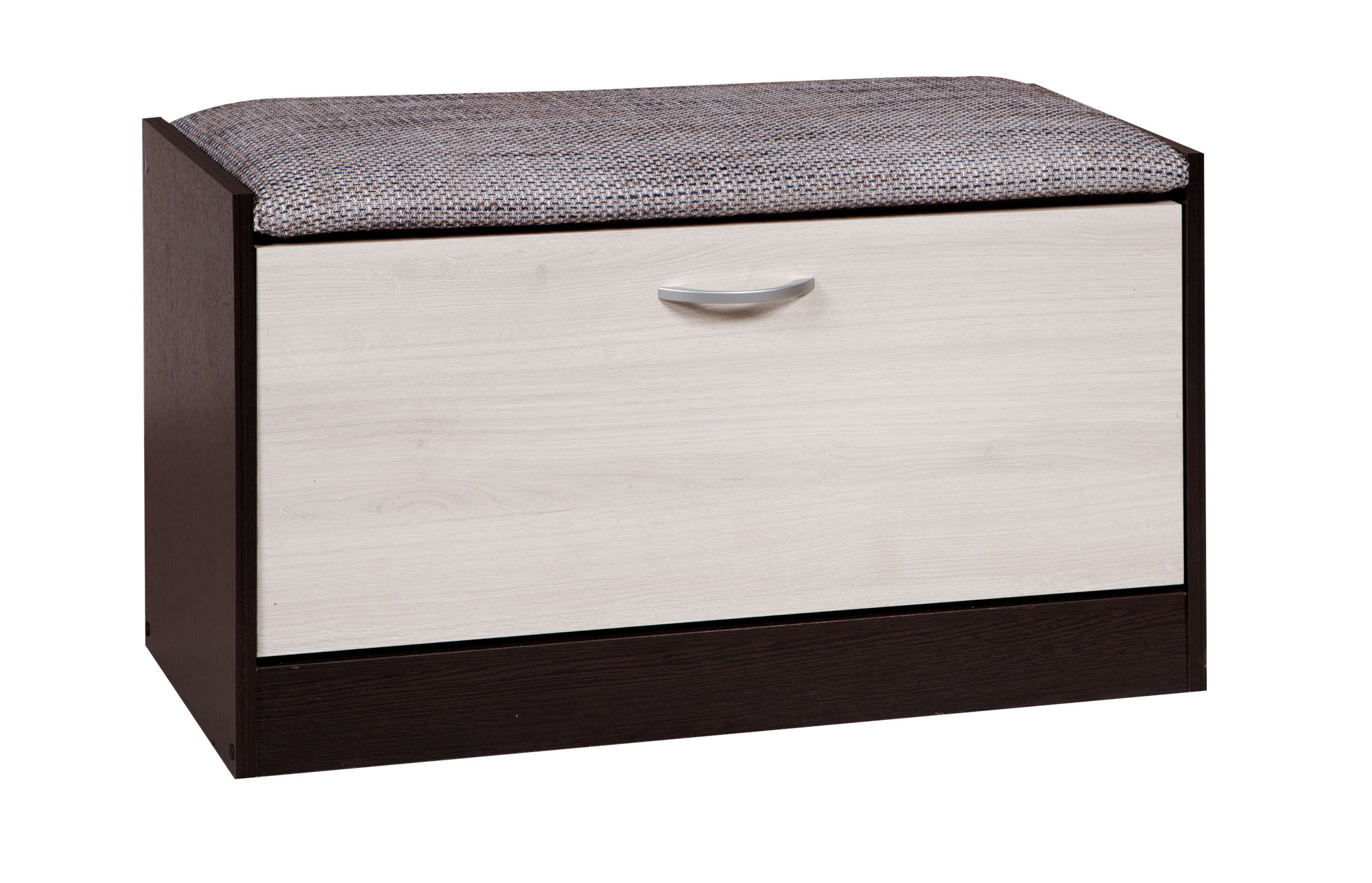 Мягкое сидение позволит с комфортом разместиться для переобувания. Обувница, за удобной откидной дверью, разместит до шести пар обуви. С нашей скамьей Вы сэкономите пространство в прихожей и сохраните Вашу обувь в идеальном порядке.
