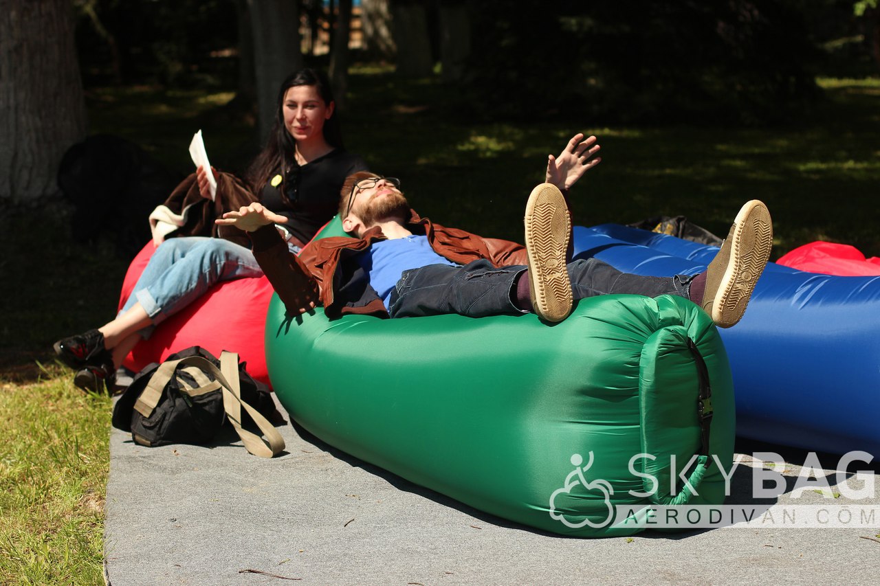 Аэродиван диван «SkyBag» - это удобное и стильное решение для организации пространства и отдыха дома, на мероприятии и даже на природе. Благодаря отсутствию внутреннего каркаса диван легко умещается в рюкзак и надувается буквально за 15 секунд. Аэродиван не боится влаги и его можно использовать как матрас для плавания.