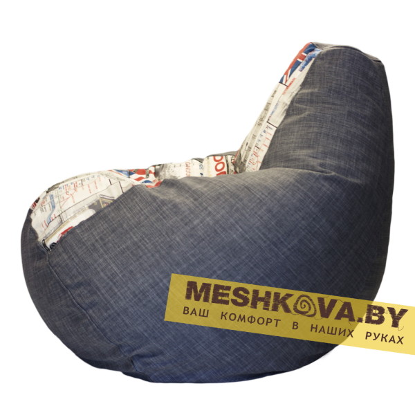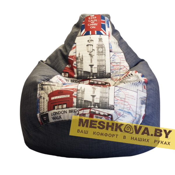 Бескаркасное кресло «Груша Британия Грей» исполнено в чехле цвета «джинс». Место для сидения обрамляет светлая ткань с изображением лондонских достопримечательностей. Приятное сочетание красного и синего в оформлении кресла придает ему поистине английский внешний вид.