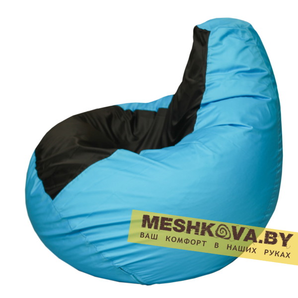 Удобное кресло-мешок, представленное в прохладном сочетании черного и голубого тонов, напомнит о зимней свежести и будет особенно актуально в жаркие летние дни.