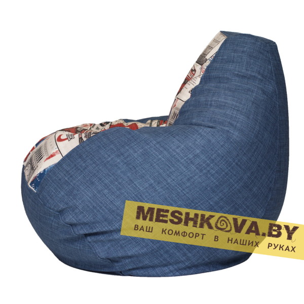 код 86370Мягкое удобное кресло-мешок с двойным чехлом в сине-белой гамме с ярким принтом.