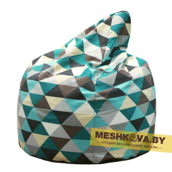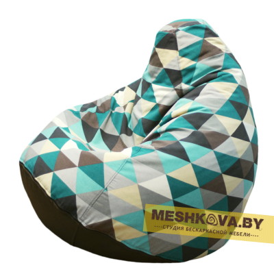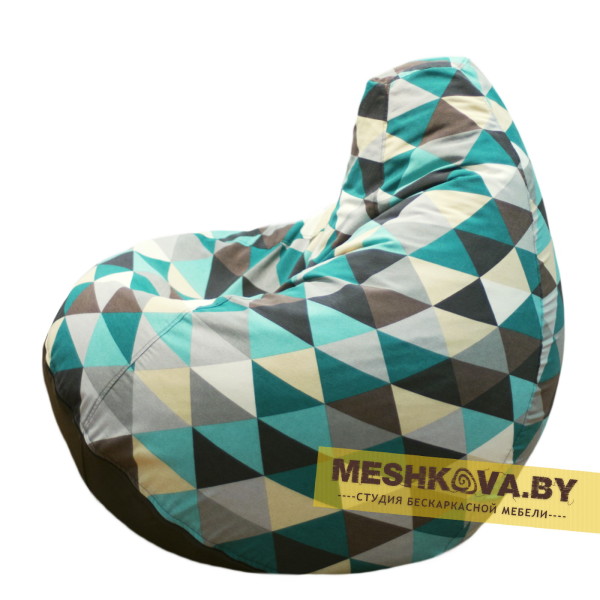 код 86374Бескаркасное кресло с геометрическим рисунком в оттенках коричневого и бирюзы.