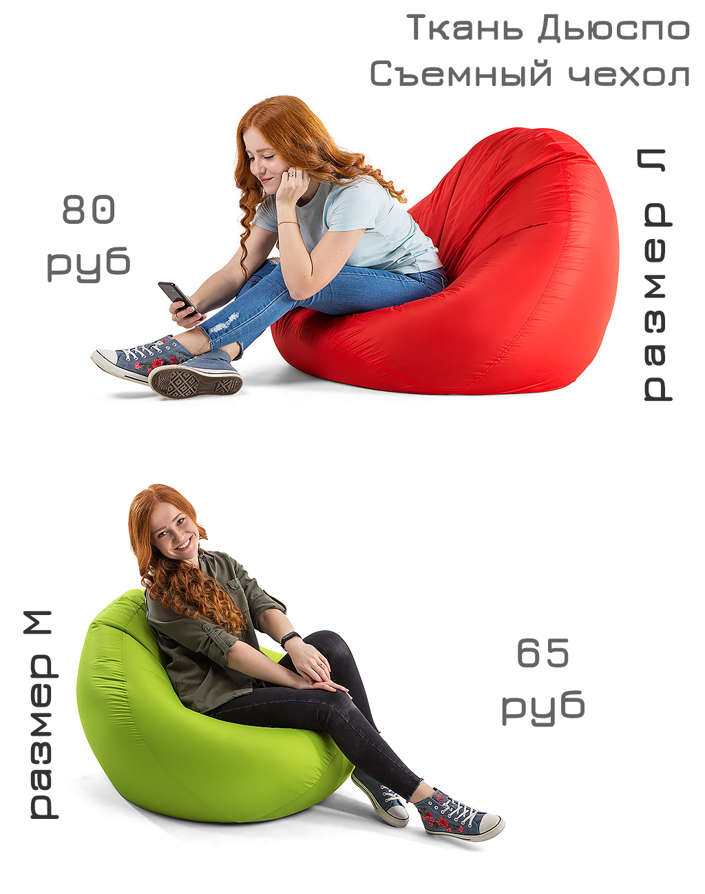 Цена на кресло мешок из ткани Дьюспо указана на размер Л с наполнителем «Классик»