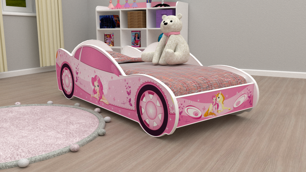 код 127729Кровать-машинка для девочек. Основание спального места: реечное, массив дерева.