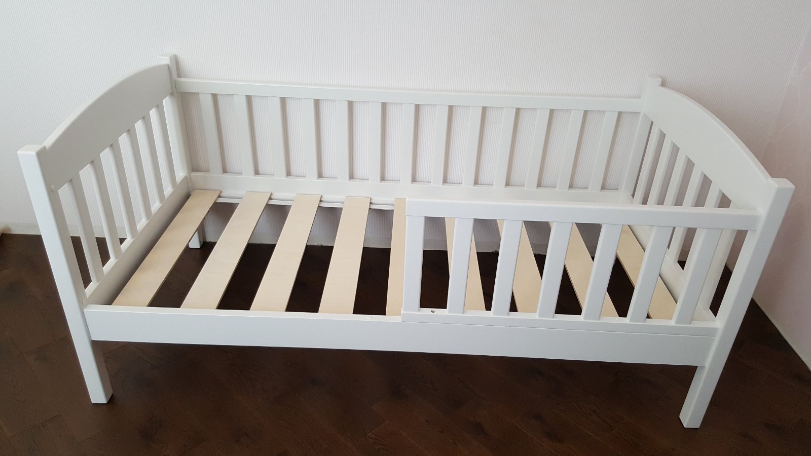 Белая кровать из массива ольхи - крепкая и надежная модель, стойкая к повреждениям. Фасад отличается своей универсальностью, благодаря белому исполнению.