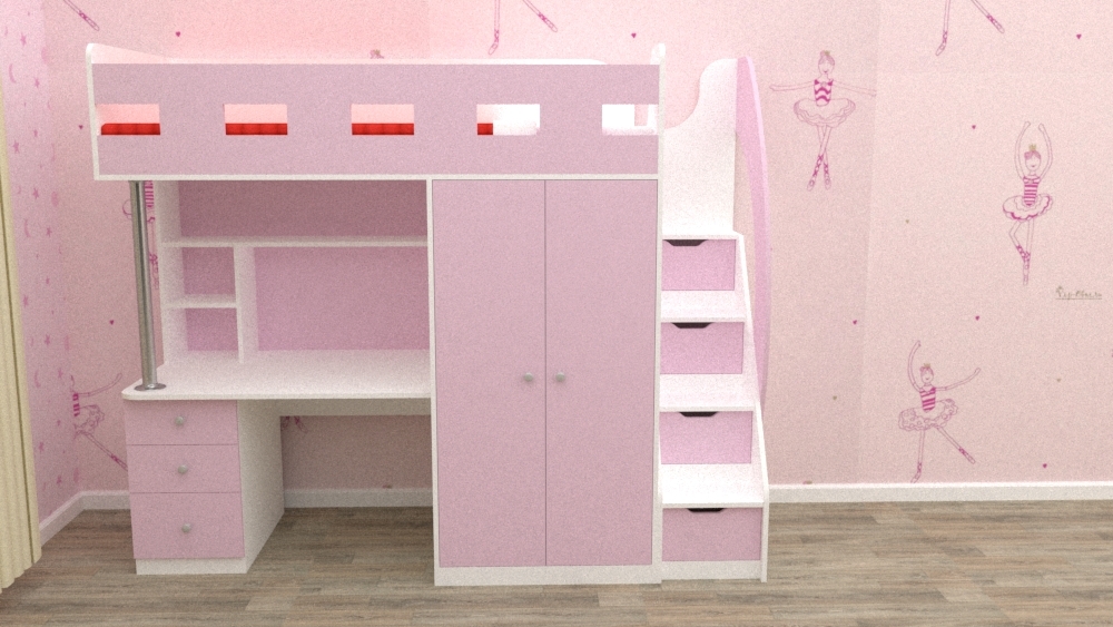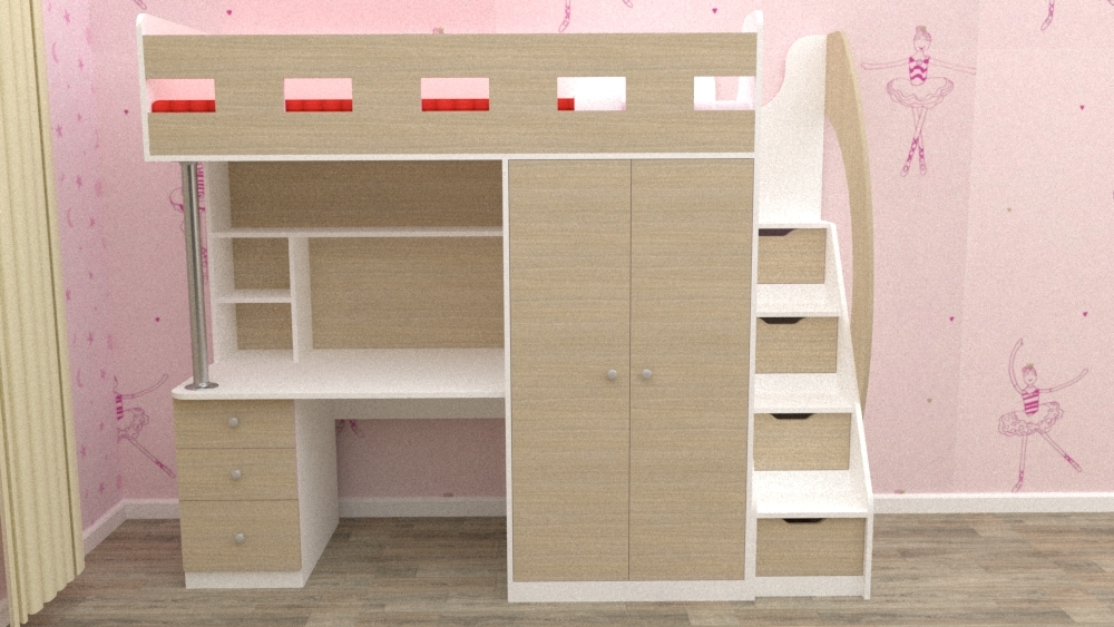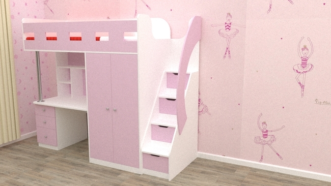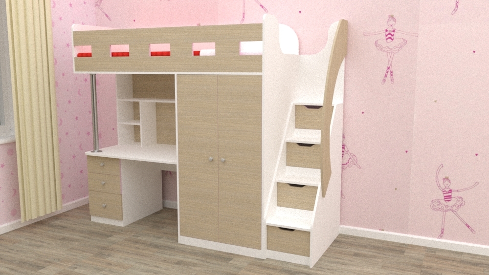 код 108476Кровать-чердак с рабочим местом, ящиками и шкафчиком для одежды или игрушек.