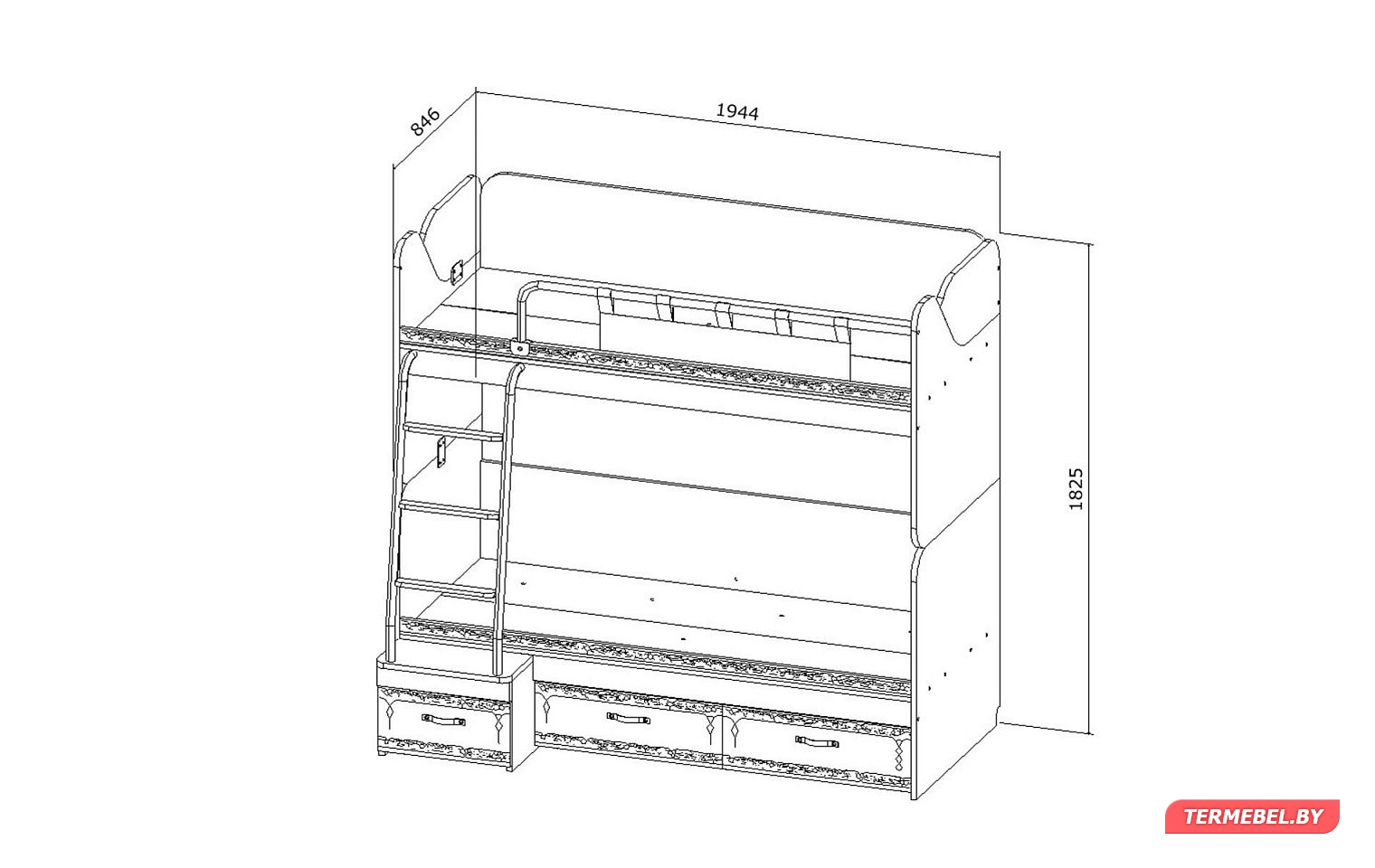 код 103550Оригинальный дизайн. Оснащена лестницей, ящиками и защитными бортиками.