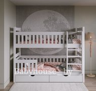 Двухъярусная кровать «Генрих» из массива сосны (c белыми ящиками)(антик)