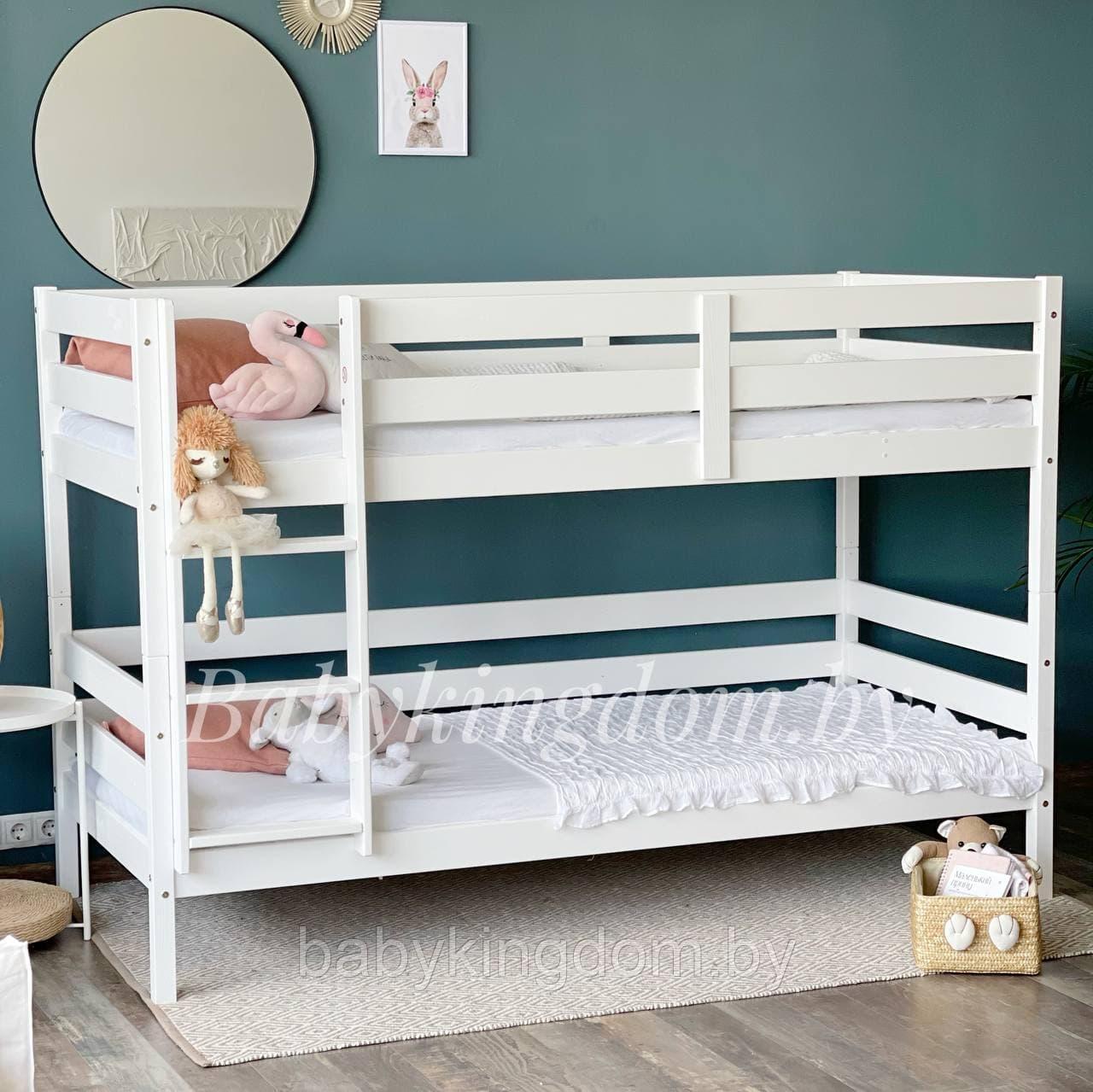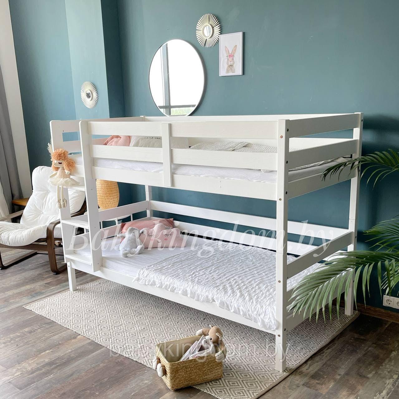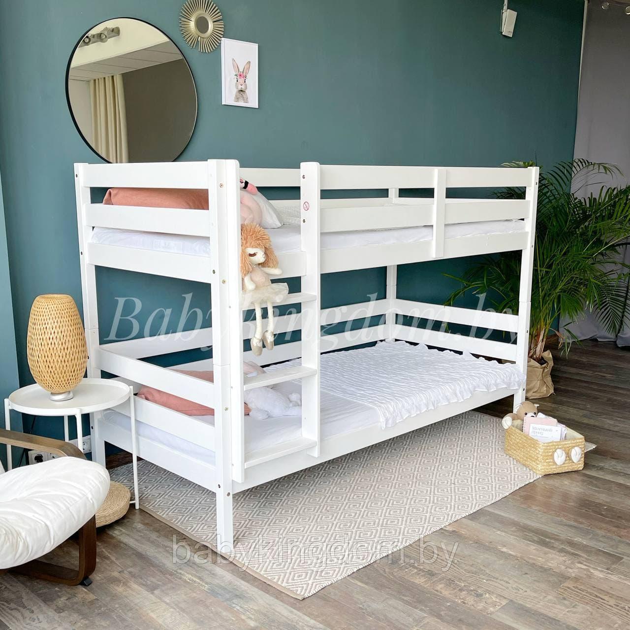 Двухъярусная кровать из массива березы «Вуди-1» с ящиками (белый)