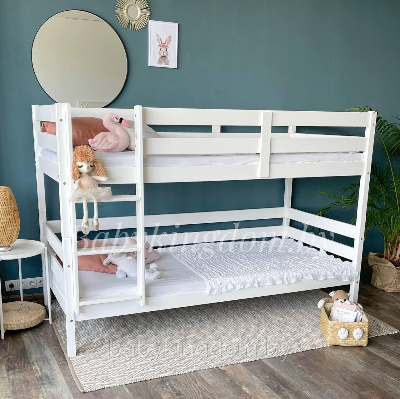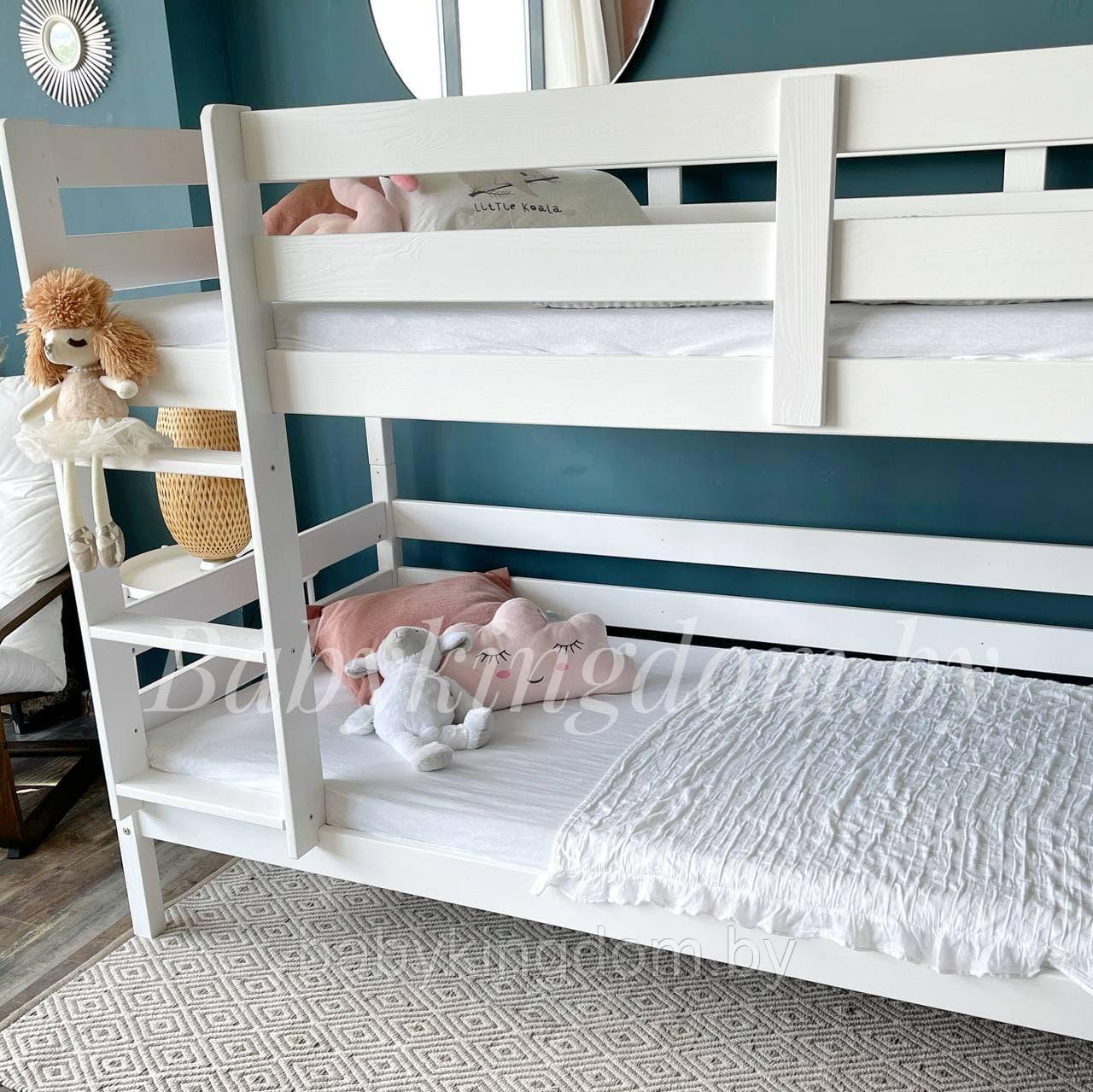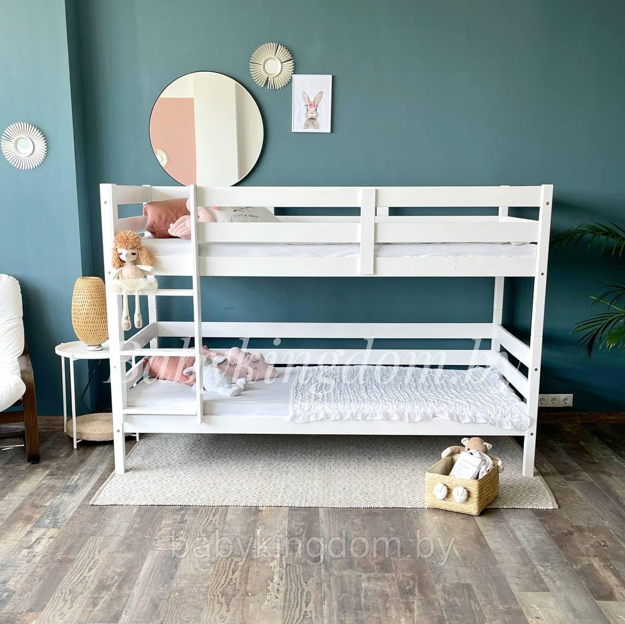 Двухъярусная кровать из массива березы «Вуди-1» с ящиками (белый)