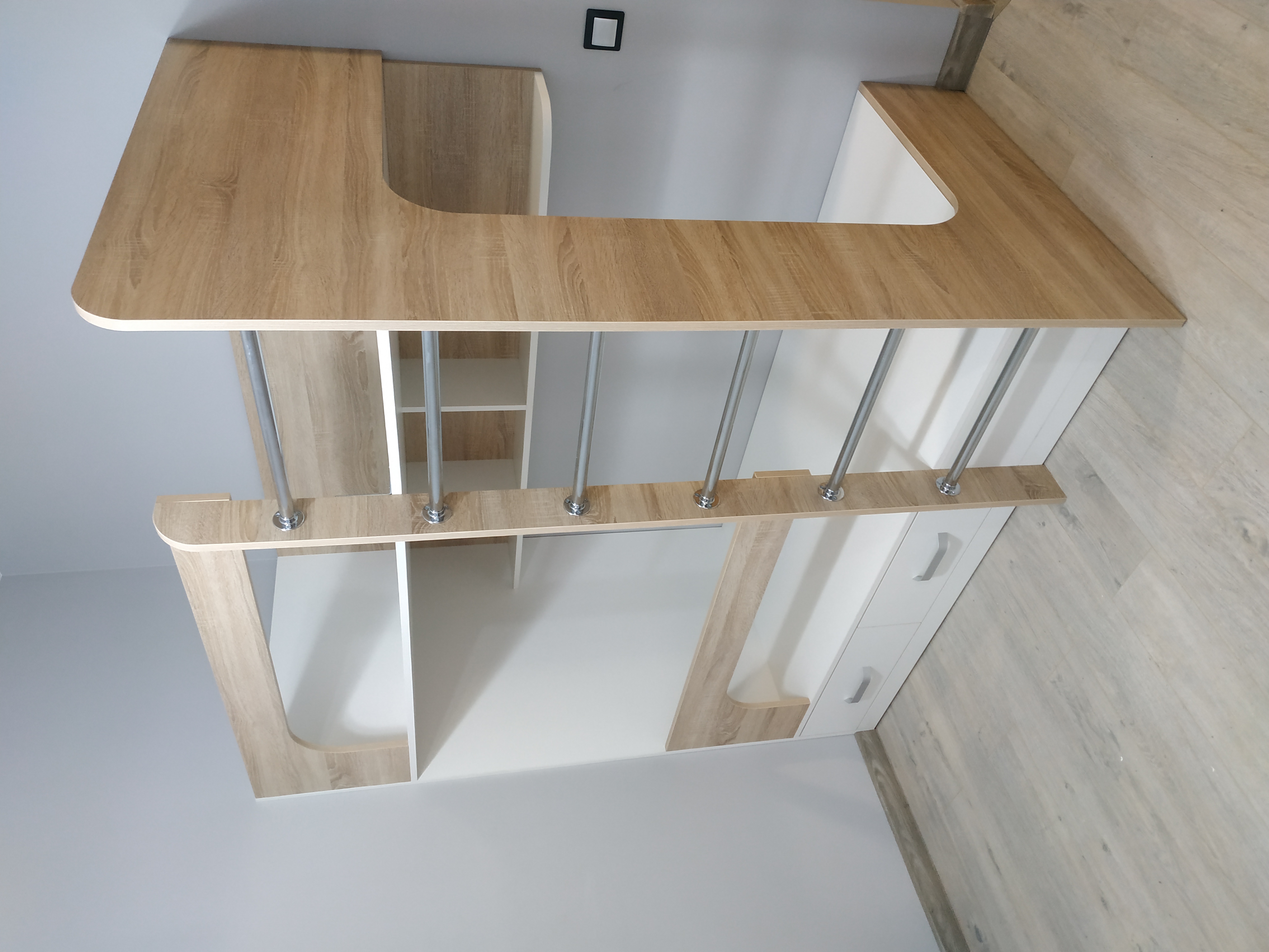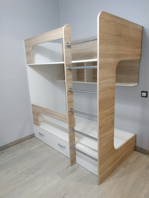 код 110533Оснащена защитными бортика и выдвижными ящиками. Удобная и безопасная лестница.