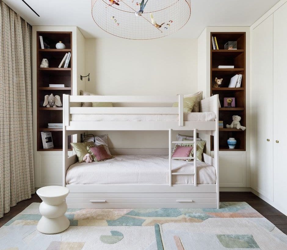 Два спальных места, защитный борт, лестница, вместительный ящик для хранения.