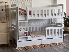 Двухъярусная кровать из массива сосны «Вуди-7» без ящиков (белый)