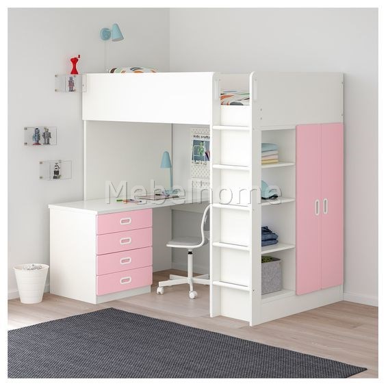 код 100887Модель выполнена в сочетании белого и розового цвета. Оснащена вместительными полками и шкафчиками.