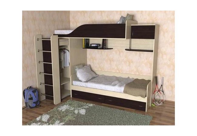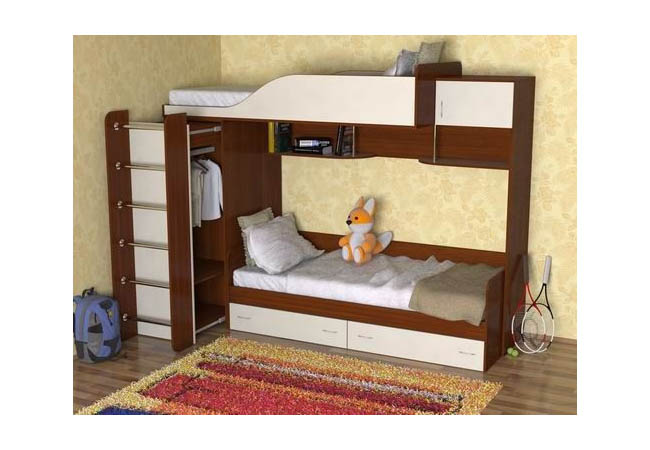 Спальное место: 90х200 и 88х185 см. Материал: ЛДСП.
