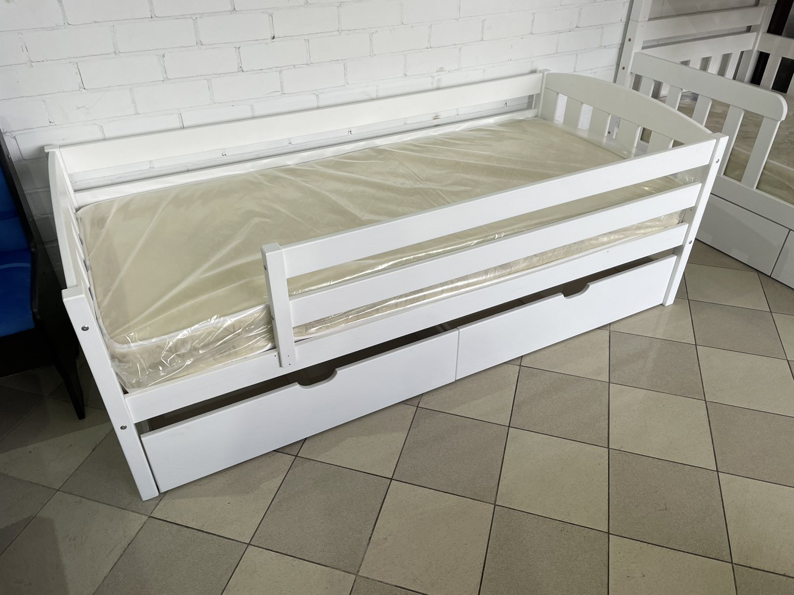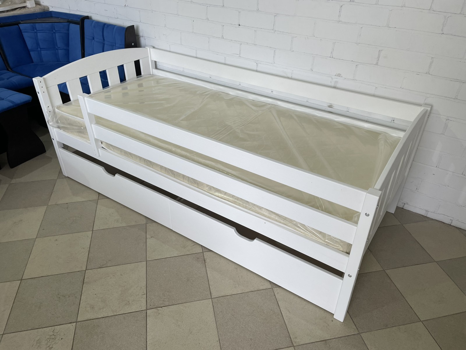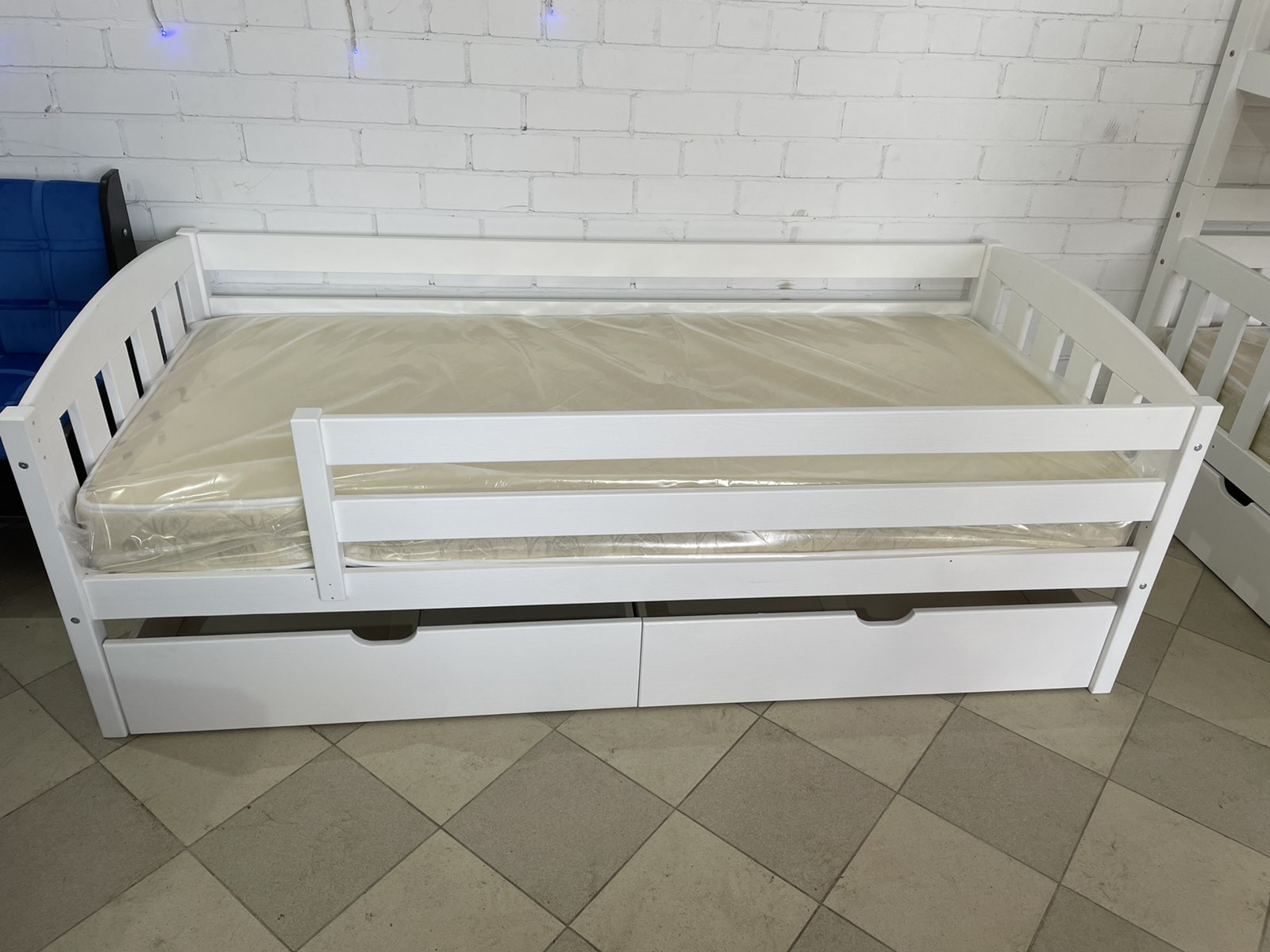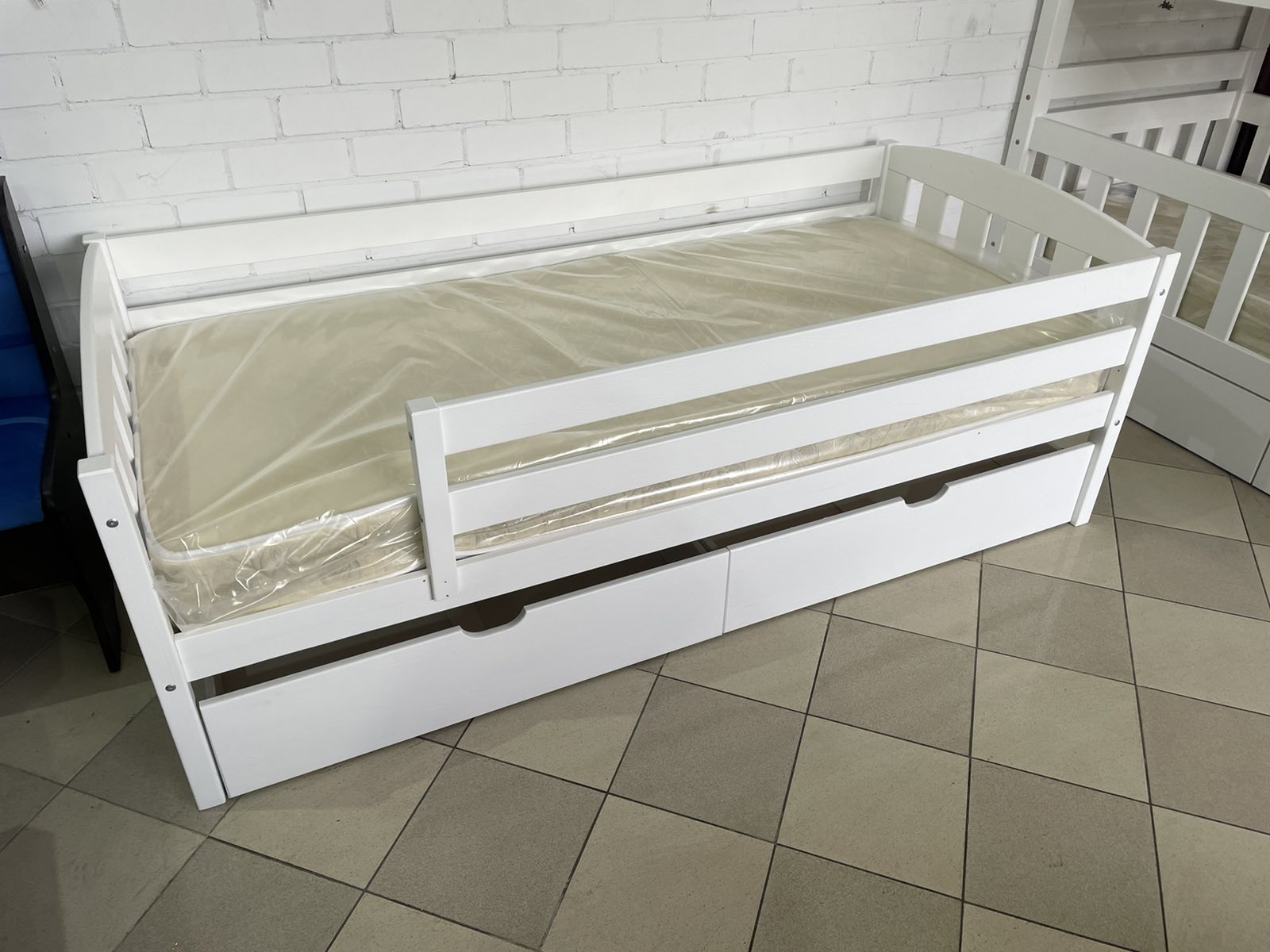 код 124535Детская односпальная кровать из натурального дерева. Защитный бортик. Ящики для белья.