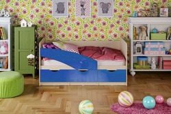 Кровать-машинка Турбо Синяя 2 со встроенным матрасом и подъемным механизмом