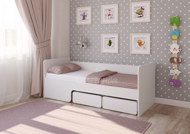 Детская кровать «Соня» Вариант 2 с задней защитой (белая)