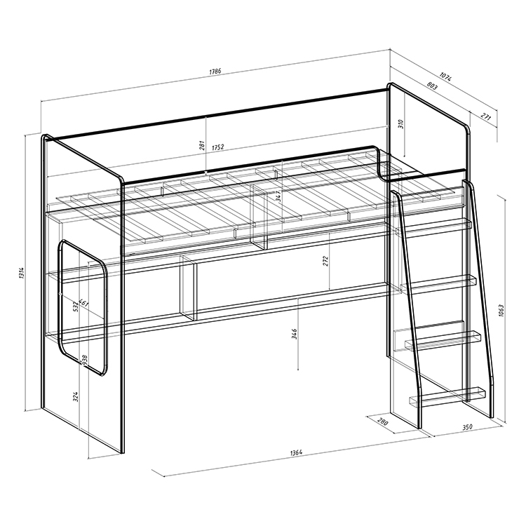 код 141712Габаритные размеры: 1786x1073x1314 мм. Под спальным местом располагается игровая зона.