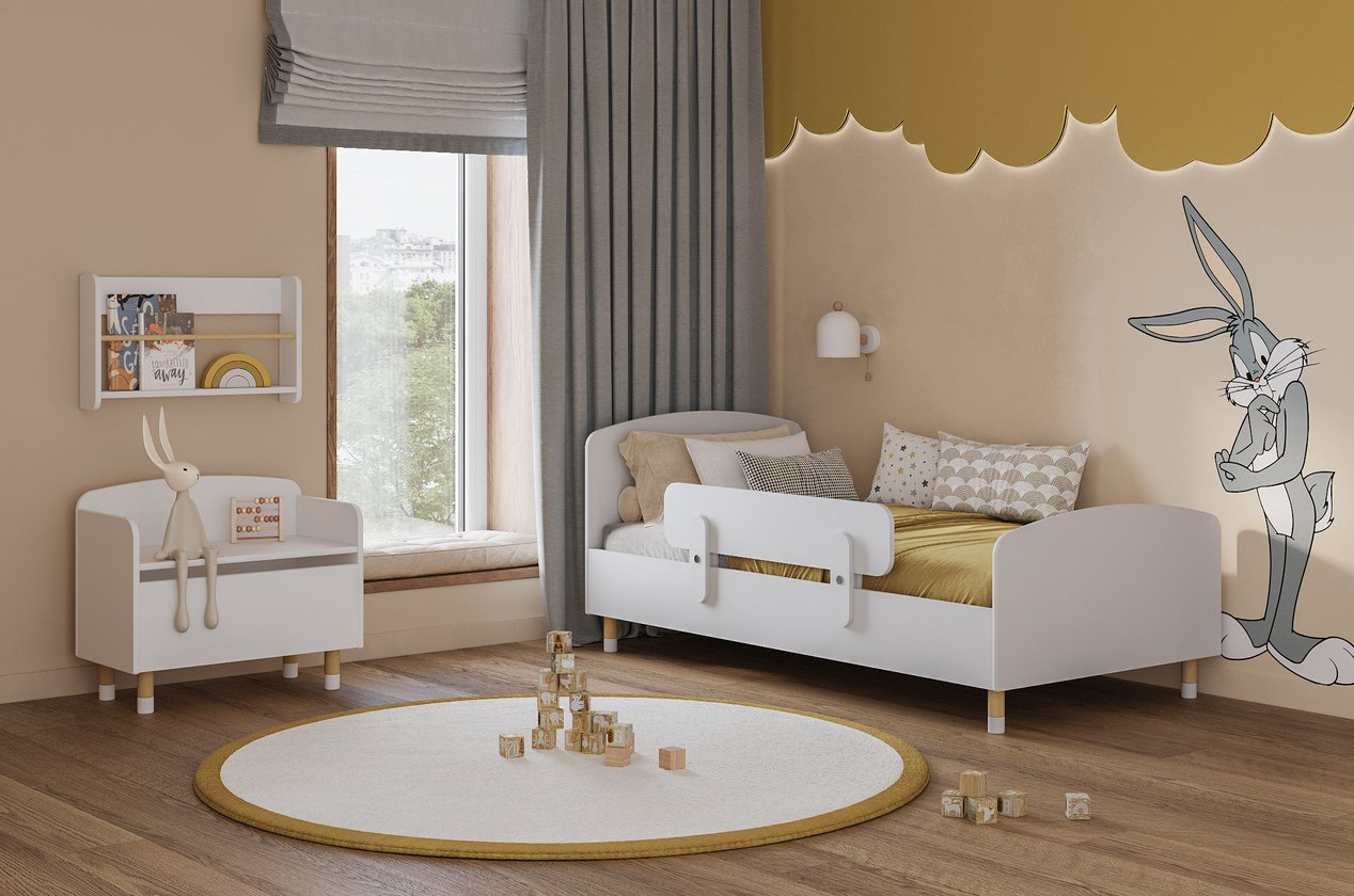 Кровать с бортиком с ящиками «Классика» (белая) + матрас Kinder 4