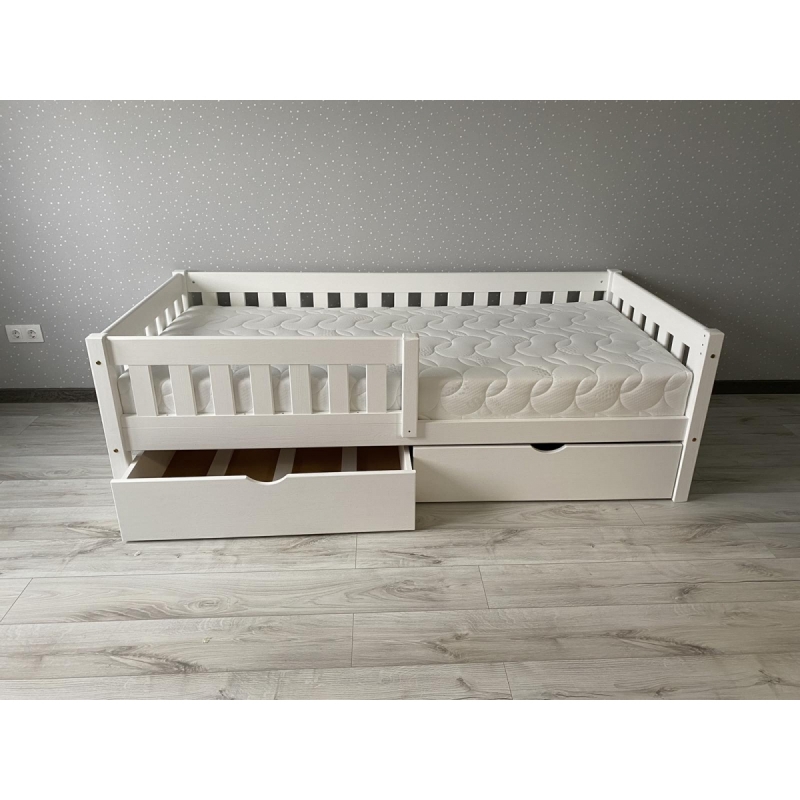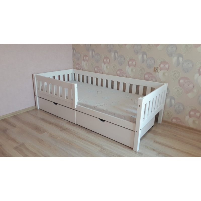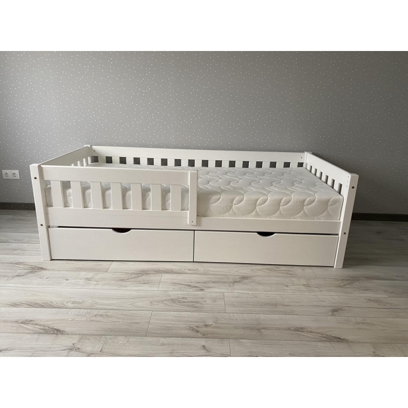 Детская кровать с бортиком и ящиками «Генри» (белый воск)