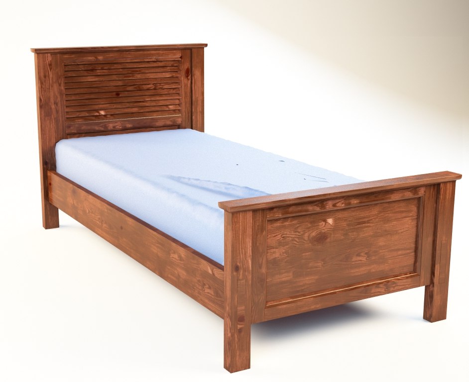 код 86213Односпальная кровать цвета орех из цельного массива.