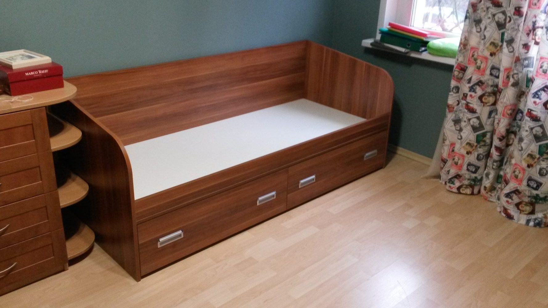 Представленная кровать подойдет как для ребенка, так и для подростка, что позволит долго не менять мебель по мере взросления любимого чада. Высокие борта превращают кровать в удобную софу с помощью подушек, а вместительные выдвижные ящики в основании будут удобны для хранения постельного белья или других вещей.