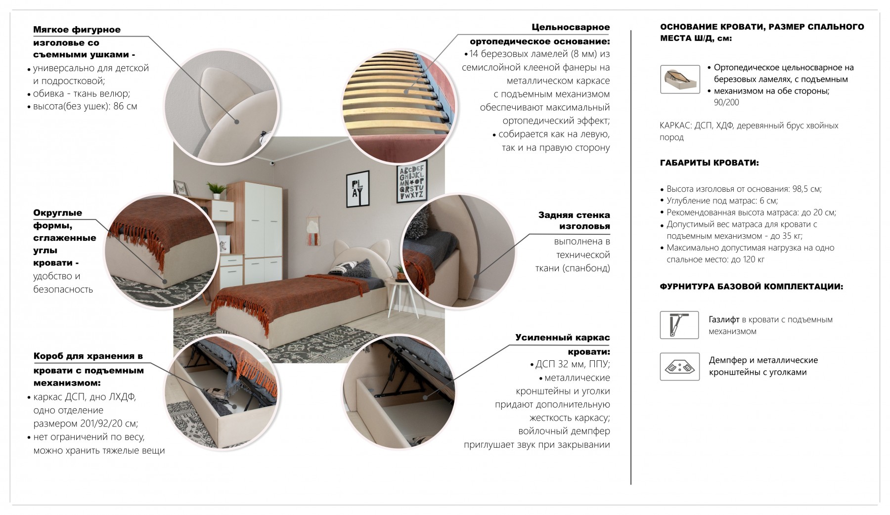 Спальное место, ШхД: 1000х2000 мм. Есть ящик для хранения.