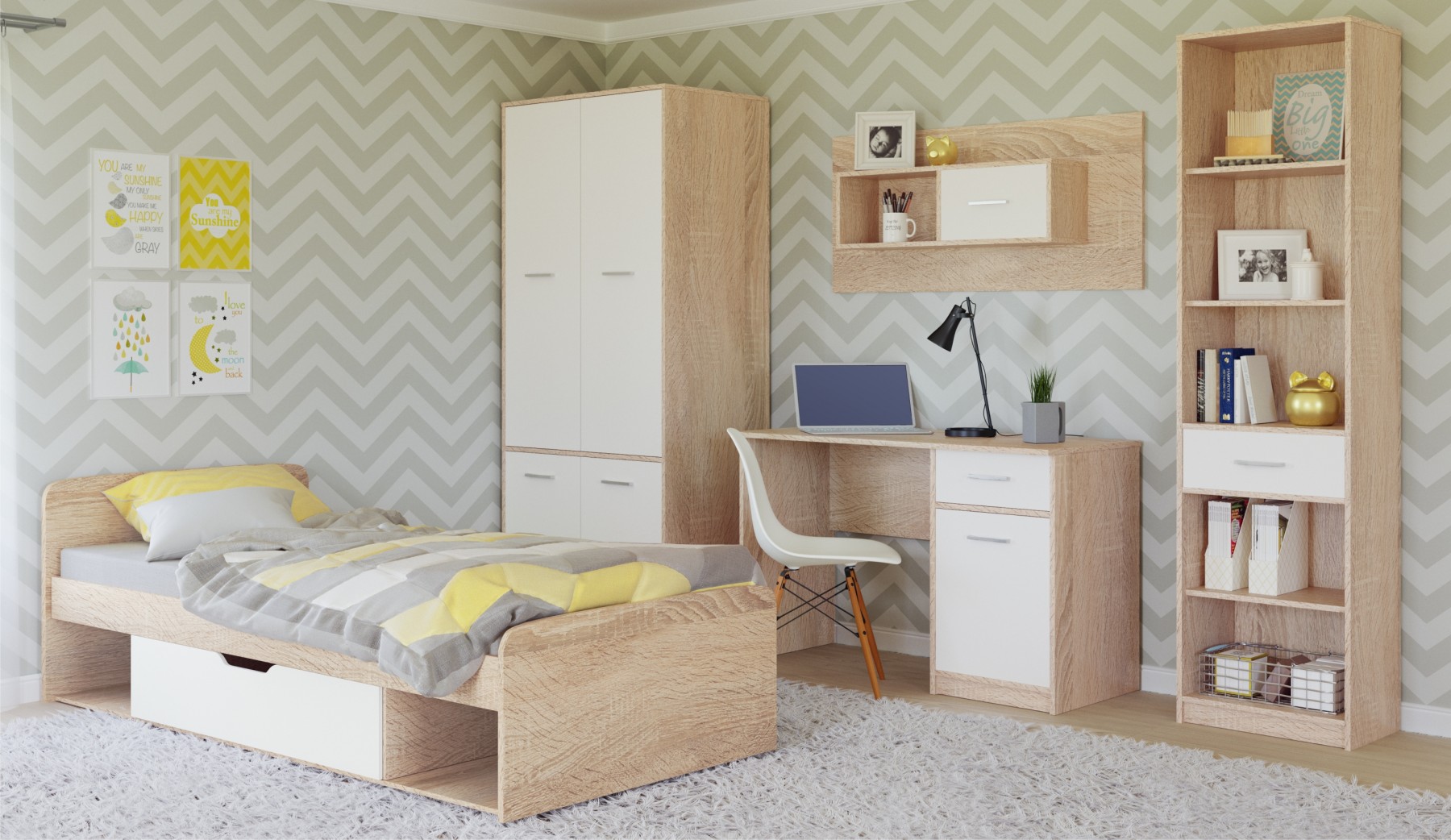 Детская кровать «Стелс» Дуб сонома/белый
